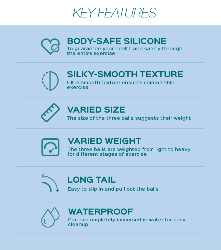 - Put the 0.172lbs weight into the right place of your vagina, and tighten your pelvic floor muscles for 3-5s, then relax for 3-5s, repeat the process 10 times, and 3 times a day.