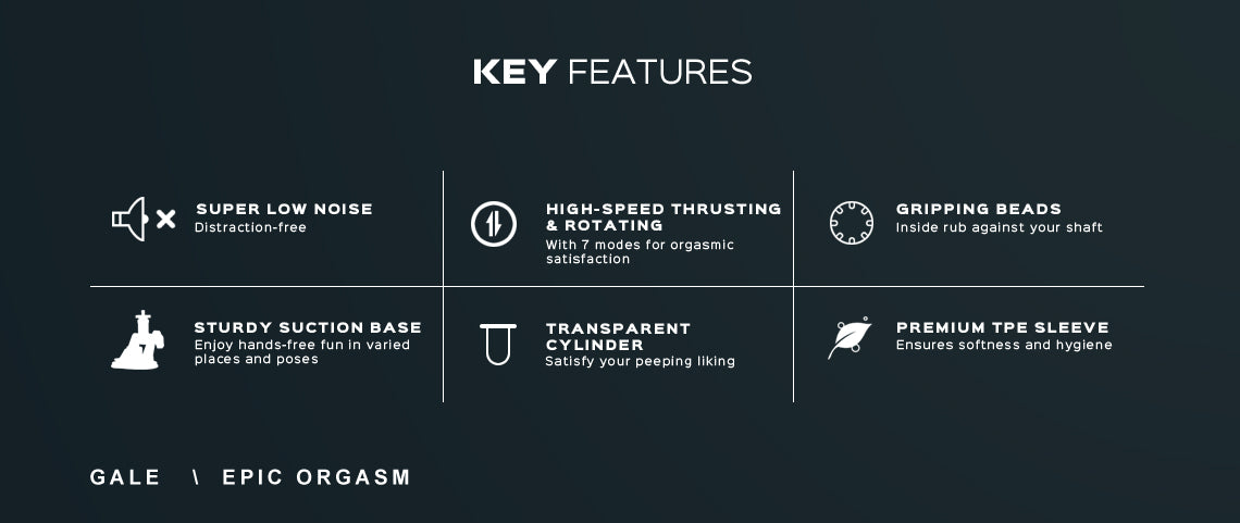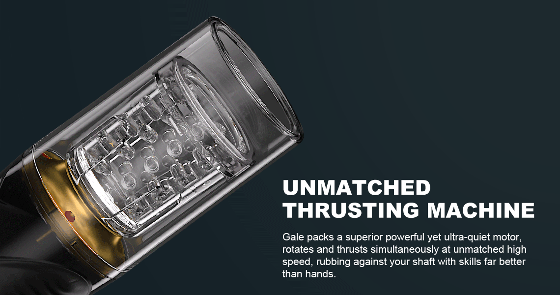 Gale is equipped with 7 unique rotating & thrusting programes, rubs against your shaft with skills far better than hands, a sliding scale of pleasure until you feel your heart pounding, then your mind goes completely blank...an epic orgasm to deliver.
