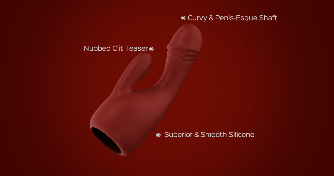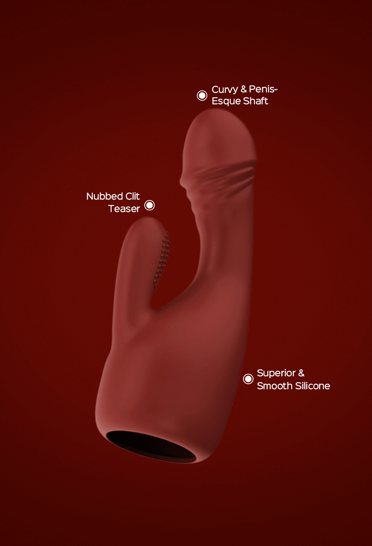 Featuring an adorable bunny shape, this double-pleasure add-on harnesses the orgasmic power of your magic wand! Its long end is slightly curved with a bulbous head that perfectly targets your G-spot, while its smaller tip tickles your clit on the outside. Take a closer look, and you’ll find rows of delicate pleasure nubs on the clit teaser, designed to bring you even more explosive sensations.