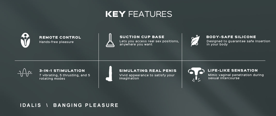 The 3-in-1 vibrating dildo combines 7 types of vibration, 5 thrusting styles, and 5 rotating patterns to create a penetration experience that a man could never achieve.