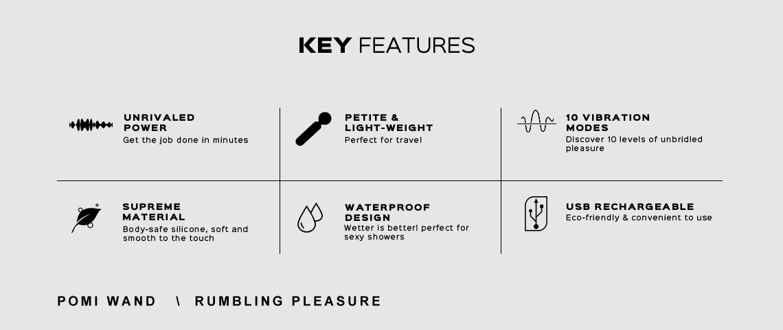 A combination of the words "powerful" and "mini," and "Pomi" vibrating wand hides its immense power in its convenient, elegant design!